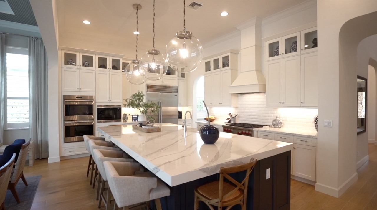 THE MOST stellar appointments in this 6 bed or 5 plus theater, 7.5 bath home w/ loft, & library expanded custom Wakefield model. On a .40 acre lot, with enormous side yard & long lake views, this coastal modern Hamptons-esque home is professionally designed w/ the absolute highest end finishes: custom wood & lacquer cabinetry thru-out, incredible window treatments comprised of plantation shutters layered w/ impeccable draperies & hardware, stunning lighting, whitewash beach wood flooring thru-out & sumptuous wallcoverings accenting the spectacular architecture. A stunning white gourmet kitchen quartz countertops, top of the line appliances, a private Master suite with an elegant & massive Master bath, inside & out entertaining areas, summer kitchen, oversized heated saltwater pool.