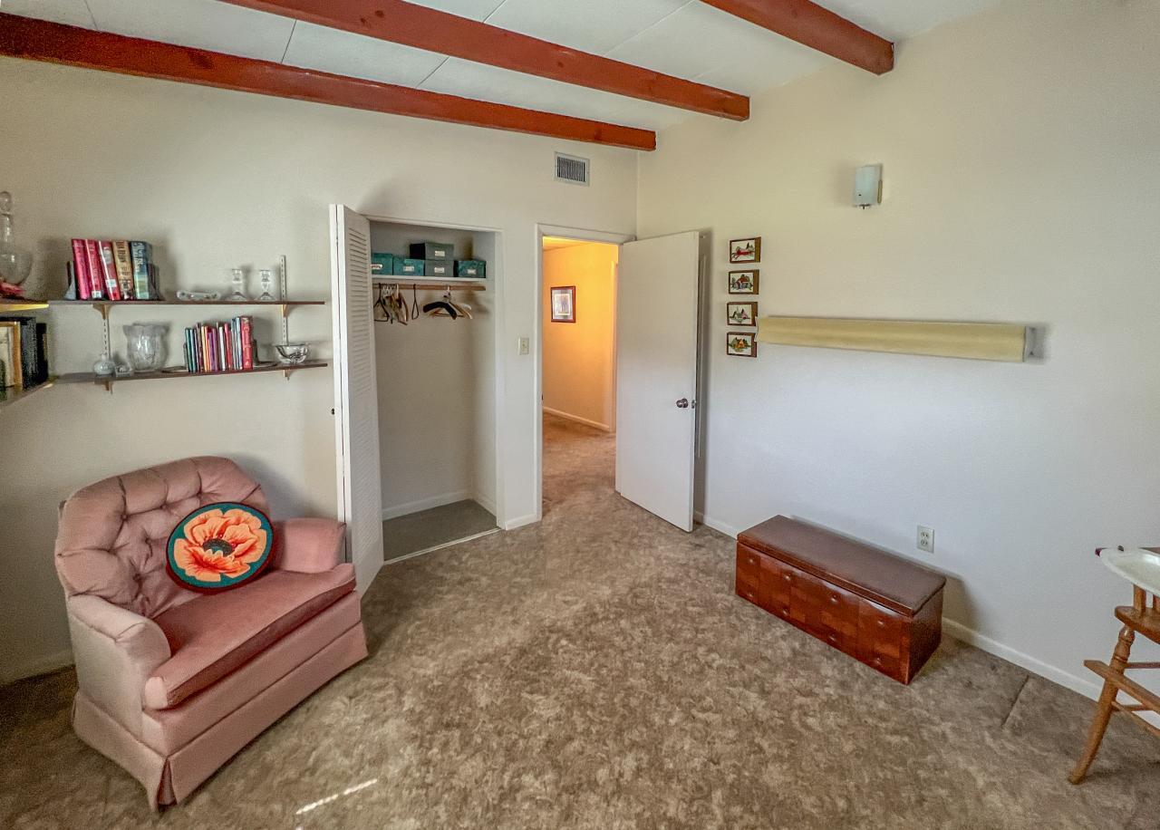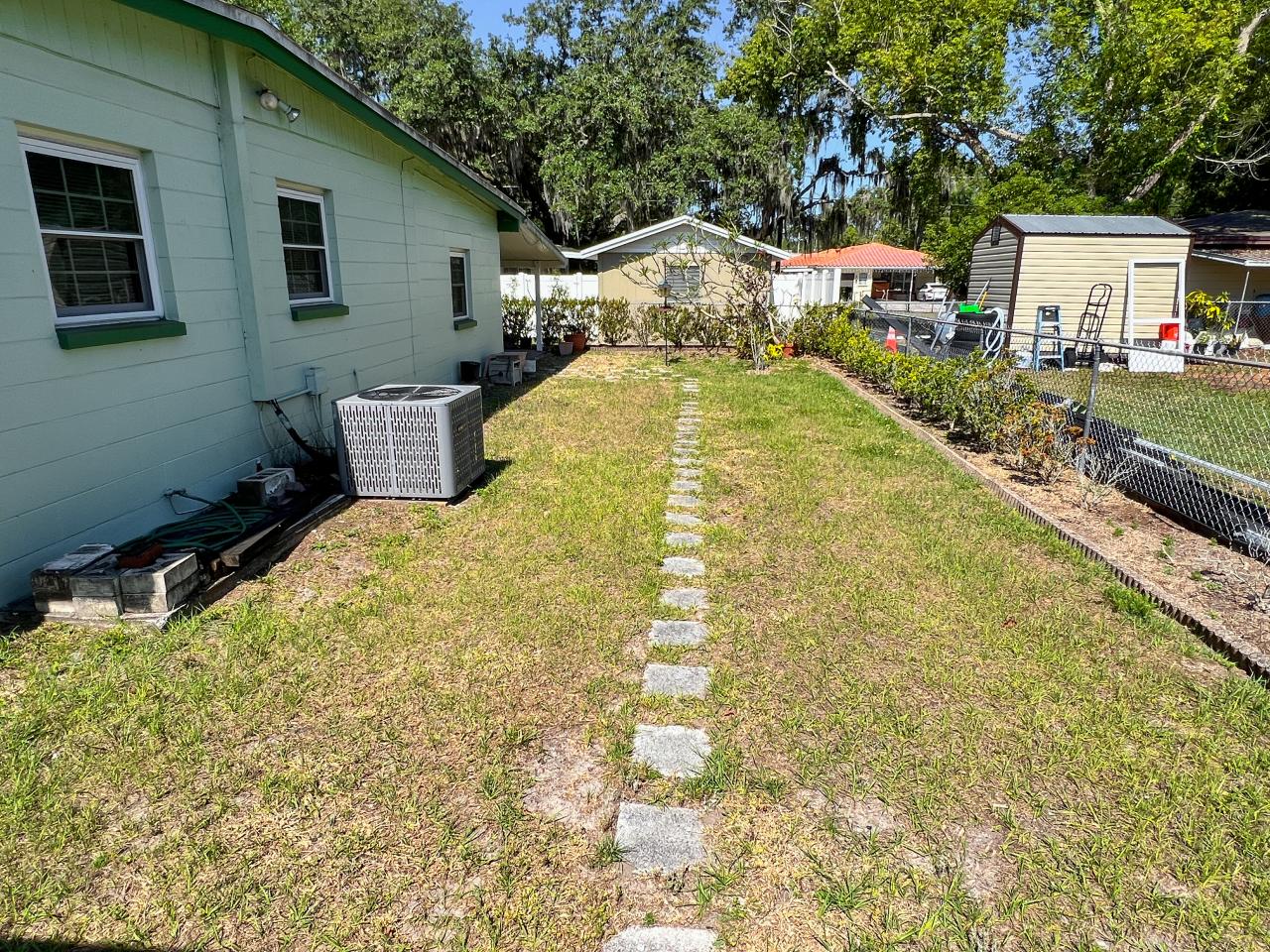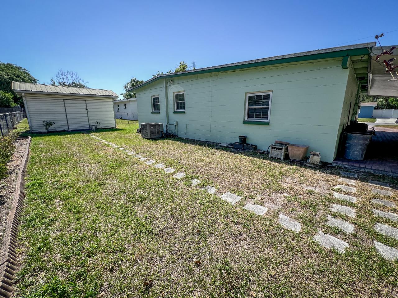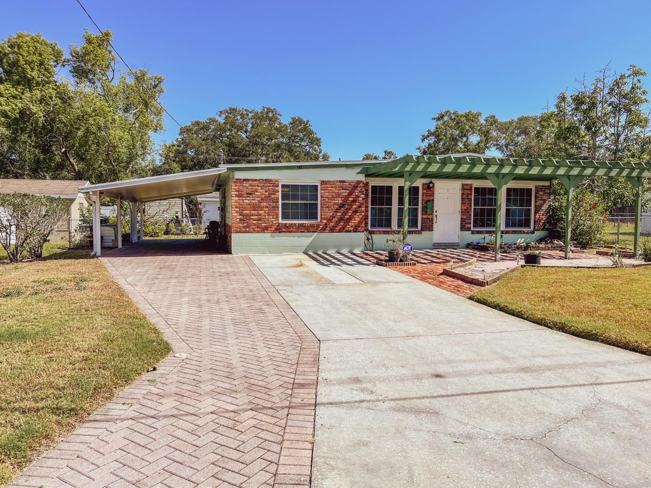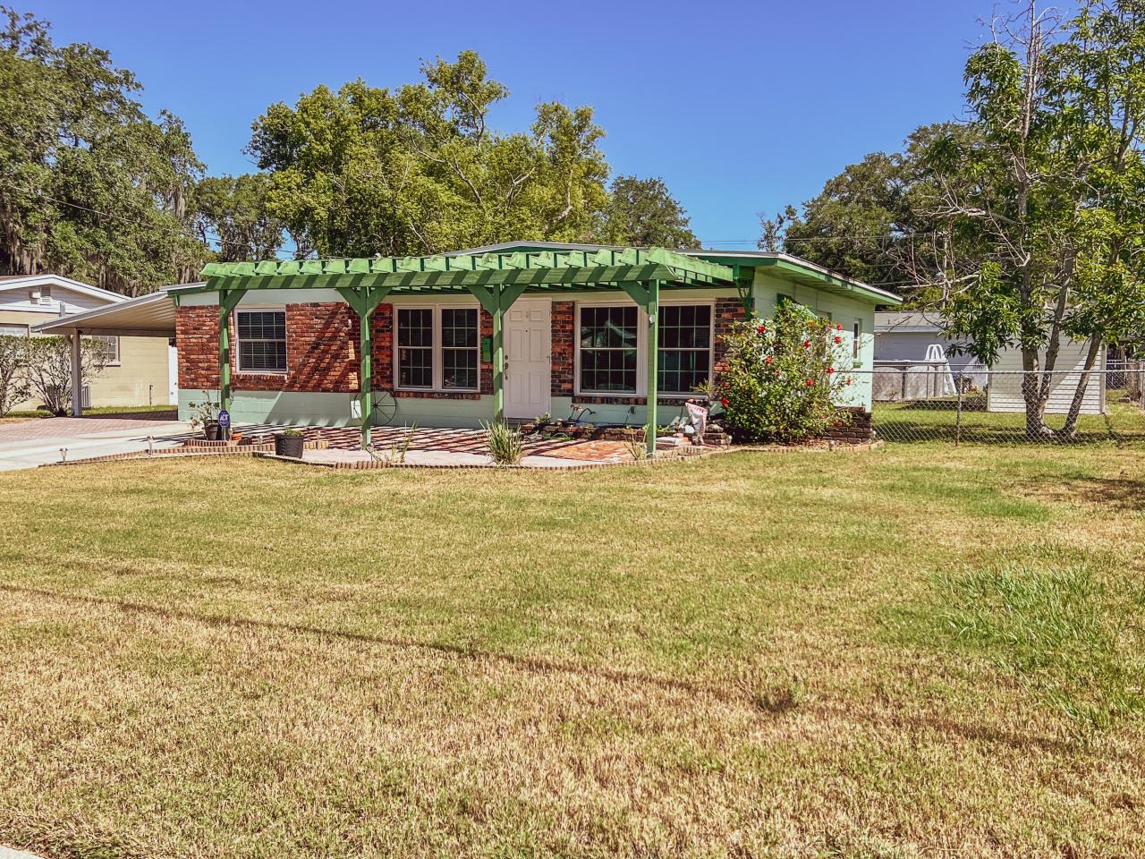 Mid-Century Rambler Home in Forest Hills! With its gently-pitched roof lines, tons of windows, terrazzo floors, and "exposed beams," this property is the textbook definition of a mid-century rambler. Many updates have been done but the home retains much of its mid-century charm. Plenteous sunlight and vaulted ceilings framed by exposed "beams" on gently sloped ceilings greet you as you enter the Living Room of the home through the front door. Next to the Living Room is the Breakfast Nook, an ideal spot to enjoy your morning coffee. The Kitchen which features a Breakfast Bar, was updated some years ago. Appliances include a wall oven and cooktop with a range hood, refrigerator, and dishwasher. The next room, a Multi-Purpose Room, was most recently used as a Family Room but it could also serve as a large Dining Room, a Media Room, etc. At one end of the Multi-Purpose Room, a large Utility Room houses the Laundry Hook-Ups and provides a ton of storage. The Primary Bedroom boasts a huge Walk-In Closet with an entrance to Bathroom 2 which also has a doorway leading into the Multi-Purpose Room. Bathroom 2 has a shower (no tub) but, with a bit of effort, could be reconfigured along with the Walk-In Closet, turning the Primary Bedroom into a Primary Suite with a dedicated en-suite Bathroom. Bedroom 2 features windows on two walls, gathering tons of natural light. Here, the light fixtures, light switch, and terrazzo floor (seen in the closet) hearken back to the home's mid-century heritage. Bedroom 3 features a built-in desk and is rumored to have been the builder's office during the development of the neighborhood. It's a bit on the "cozy" side but provides plenty of room for a small bedroom, an office, a nursery, a homeschool room, or a variety of other uses. Bathroom 1, the hallway bathroom, appears to have been updated some years ago but the colorful tile helps to retain some of its "retro" vibe. What had once been a window in the tub and shower surround has been converted into a shower shelf. Exposed beams and a skylight adorn the bathroom ceiling. Exterior features begin with the outstanding curb appeal from the lush lawn, paver driveway extension, and front porch pergola. Enjoy some "front porch sitting" under the pergola with the relaxing sounds of the babbling pond in the background. A 37' carport provides ample covered parking for two respectably sized vehicles parked in tandem, and the shed provides storage for lawn equipment and other toys. The back yard is "mostly" fenced with only a short portion of fence across the side yard needed to secure the back yard for your four-legged loved ones. This home has been meticulously maintained, inside and out, with the following updated items: Roof, modified bitumen 2014; windows 2015; A/C 2021; water heater 2022; paver driveway extension 2008. Located in the Forest Hills community, it is a short commute to downtown and a plethora of amenities are nearby: Forest Hills Park Community Center, Forest Hills Aquatic Center, Busch Gardens and Adventure Island, USF, USPS, schools, shopping, restaurants, and the list goes on. Better hurry! A great home in this condition and location at this price range won't last long. Make your appointment to view it right away.