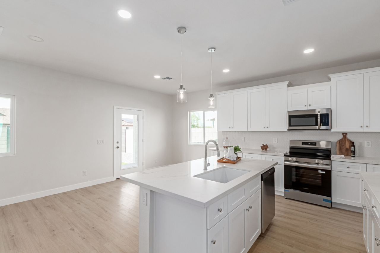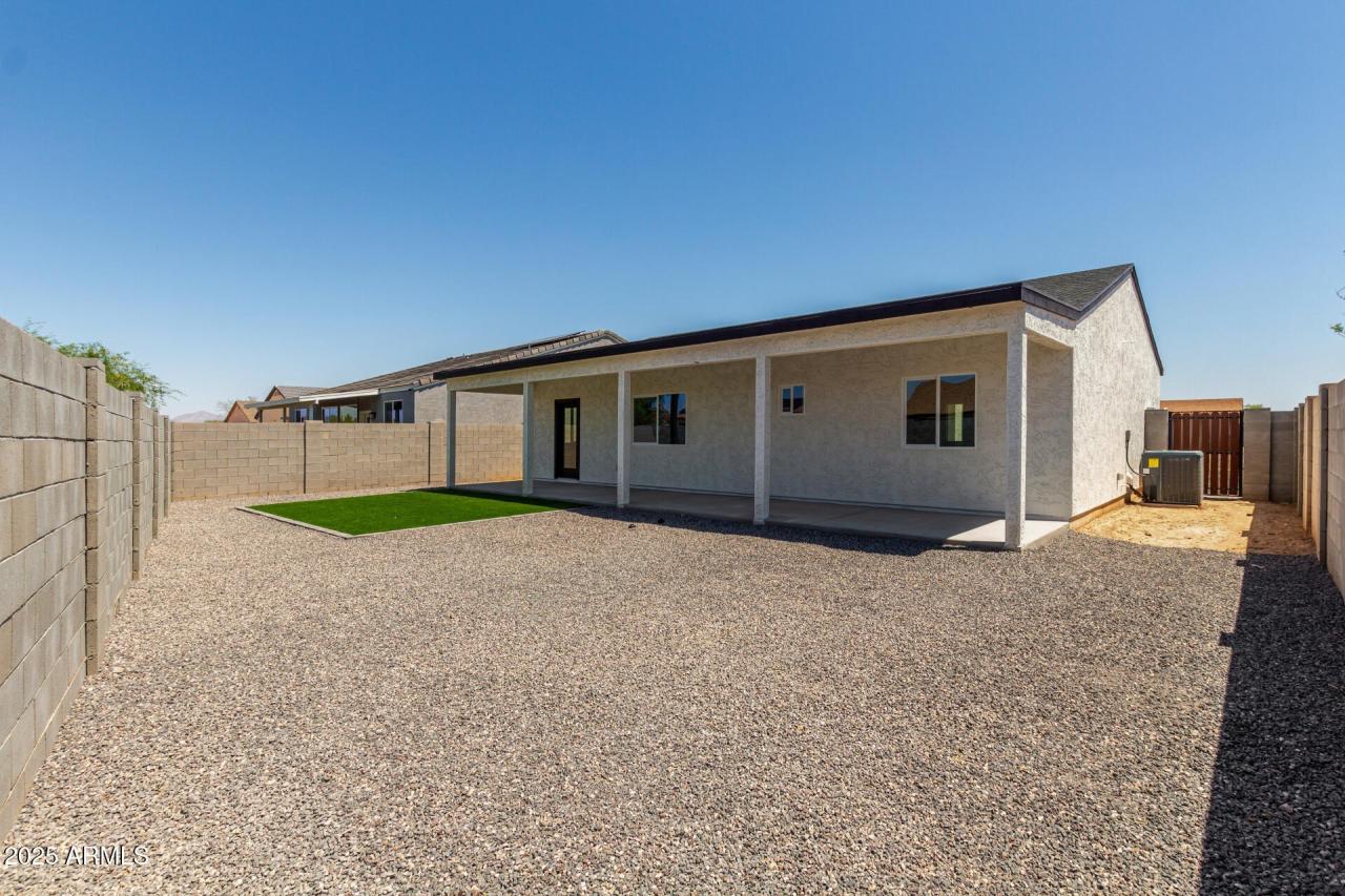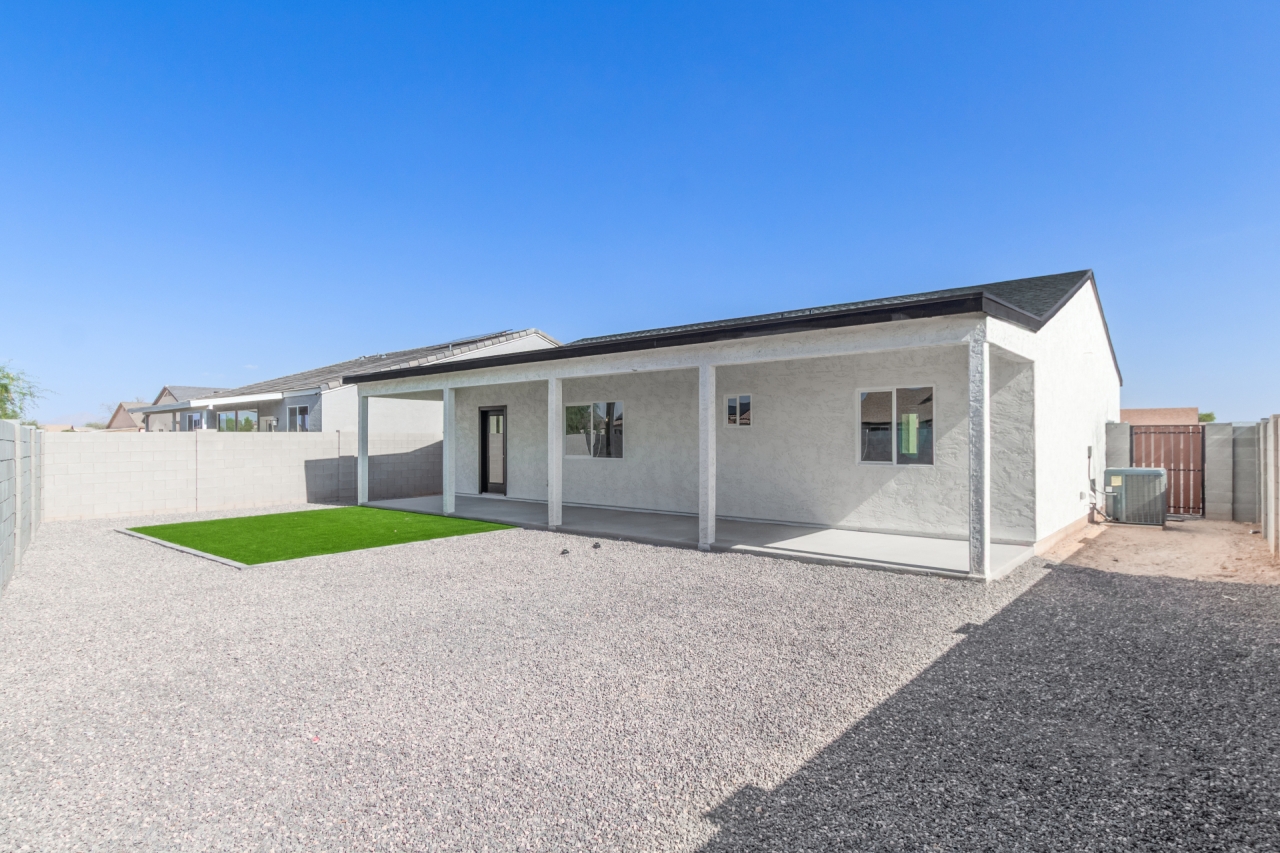 Discover refined living in this beautifully crafted NEW CONSTRUCTION Home that proves less square footage doesn't mean less comfort. Designed with intention, this efficient floor plan lives large with ample storage throughout and stylish upgrades in every corner. Inside, enjoy quartz countertops, stainless steel appliances, white shaker cabinets, and wood-look laminate flooring. The spacious owner's suite features a tiled walk-in shower and generous walk-in closet. Fully landscaped front and back, with turf, gravel, and a side to side unique covered patio. Just 15 minutes from The Promenade at Casa Grande, offering Target, HomeGoods, Starbucks, dining, and more — this move-in ready gem in fast-growing Arizona City is the perfect blend of cozy, complete, and connected!