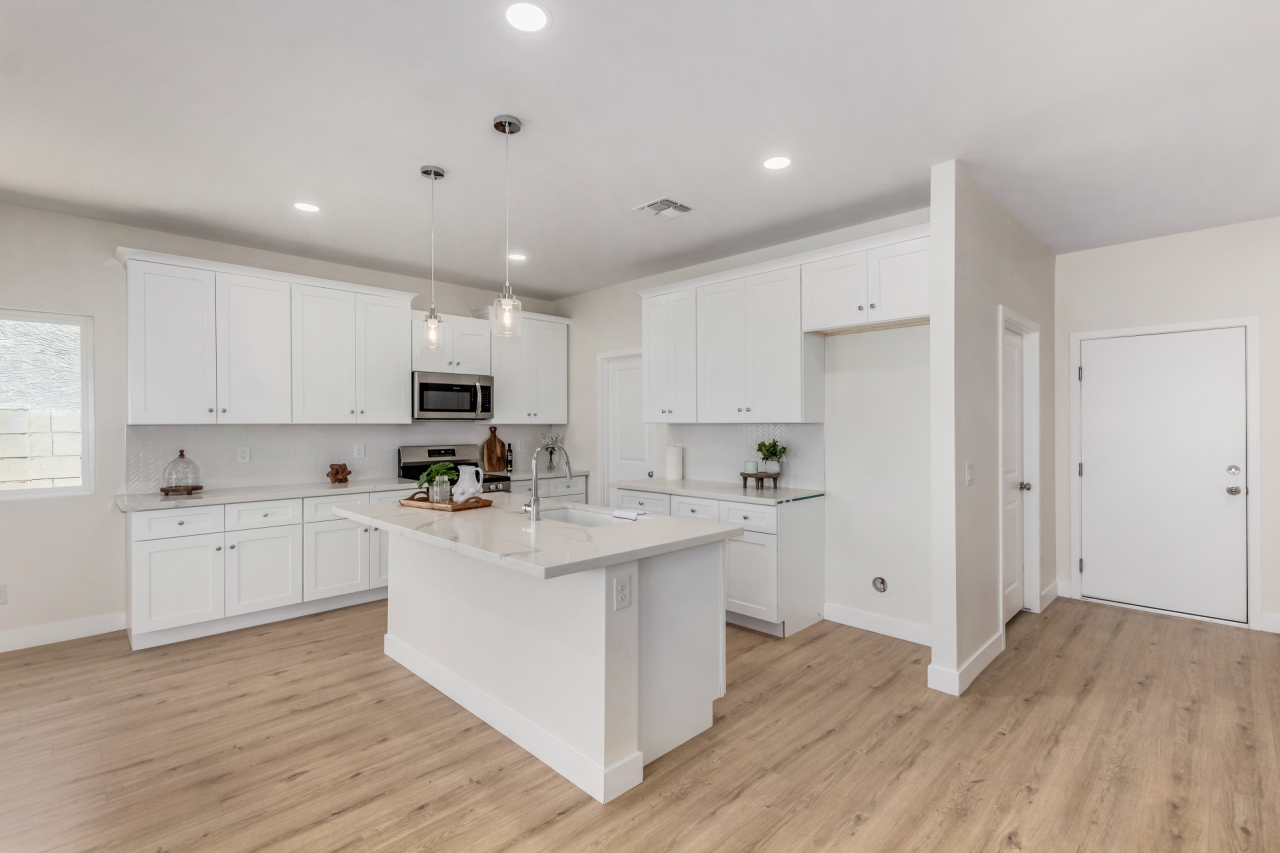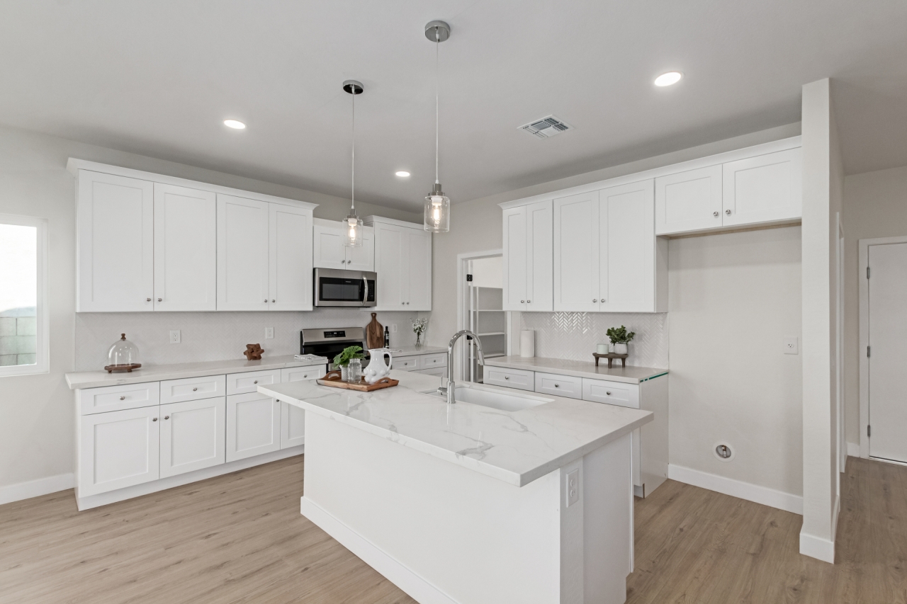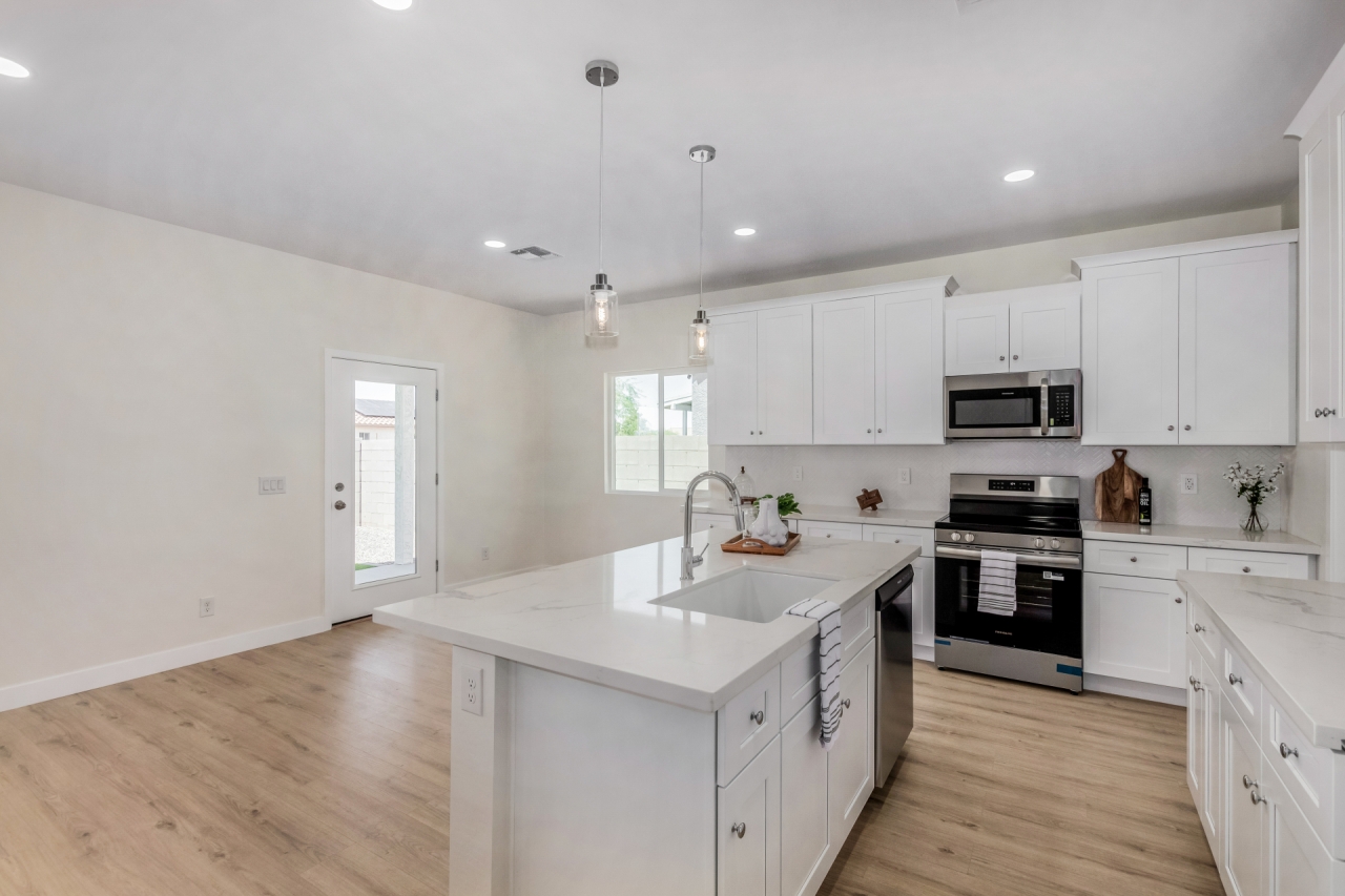 Discover refined living in this beautifully crafted NEW CONSTRUCTION Home that proves less square footage doesn't mean less comfort. Designed with intention, this efficient floor plan lives large with ample storage throughout and stylish upgrades in every corner. Inside, enjoy quartz countertops, stainless steel appliances, white shaker cabinets, and wood-look laminate flooring. The spacious owner's suite features a tiled walk-in shower and generous walk-in closet. Fully landscaped front and back, with turf, gravel, and a side to side unique covered patio. Just 15 minutes from The Promenade at Casa Grande, offering Target, HomeGoods, Starbucks, dining, and more — this move-in ready gem in fast-growing Arizona City is the perfect blend of cozy, complete, and connected!