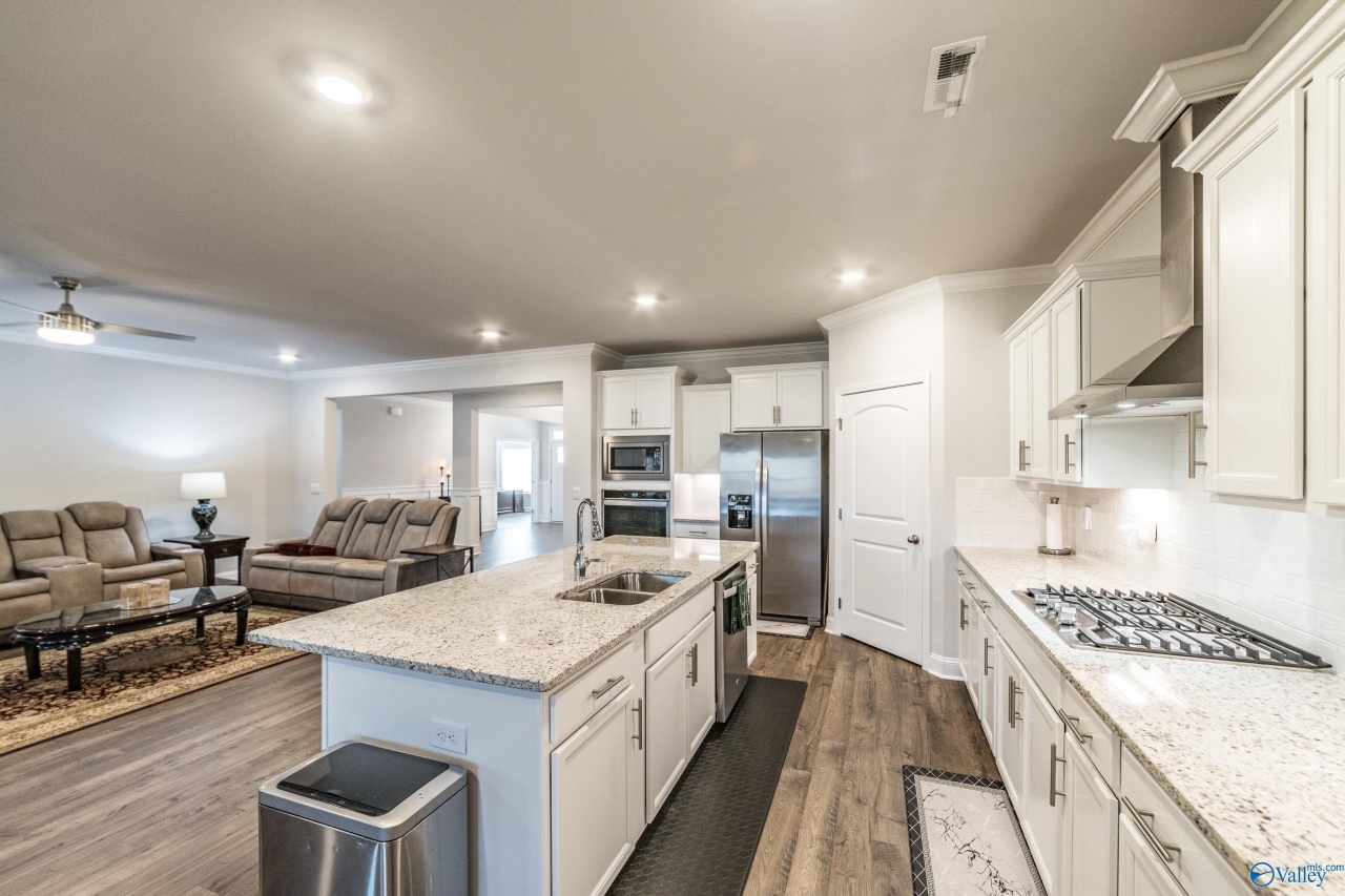 Gorgeous 5BR/3BA Rancher with side-entry 3-car garage, spectacular sunroom, and a private backyard oasis perfect for entertaining. Better than new with extensive upgrades throughout. Features 9’ ceilings, a gourmet kitchen with granite surfaces, a private office, an isolated owner’s retreat, and a guest suite with its own full bath. Includes Generac whole-home generator, smart home technology, high-end workshop with power on a concrete pad, and full privacy fencing with multiple gates. Prime location near Redstone Arsenal Gate 7 and top neighborhood amenities, including a neighborhood pool, tennis courts, fitness center, and so much more—move-in ready luxury and priced to SELL!