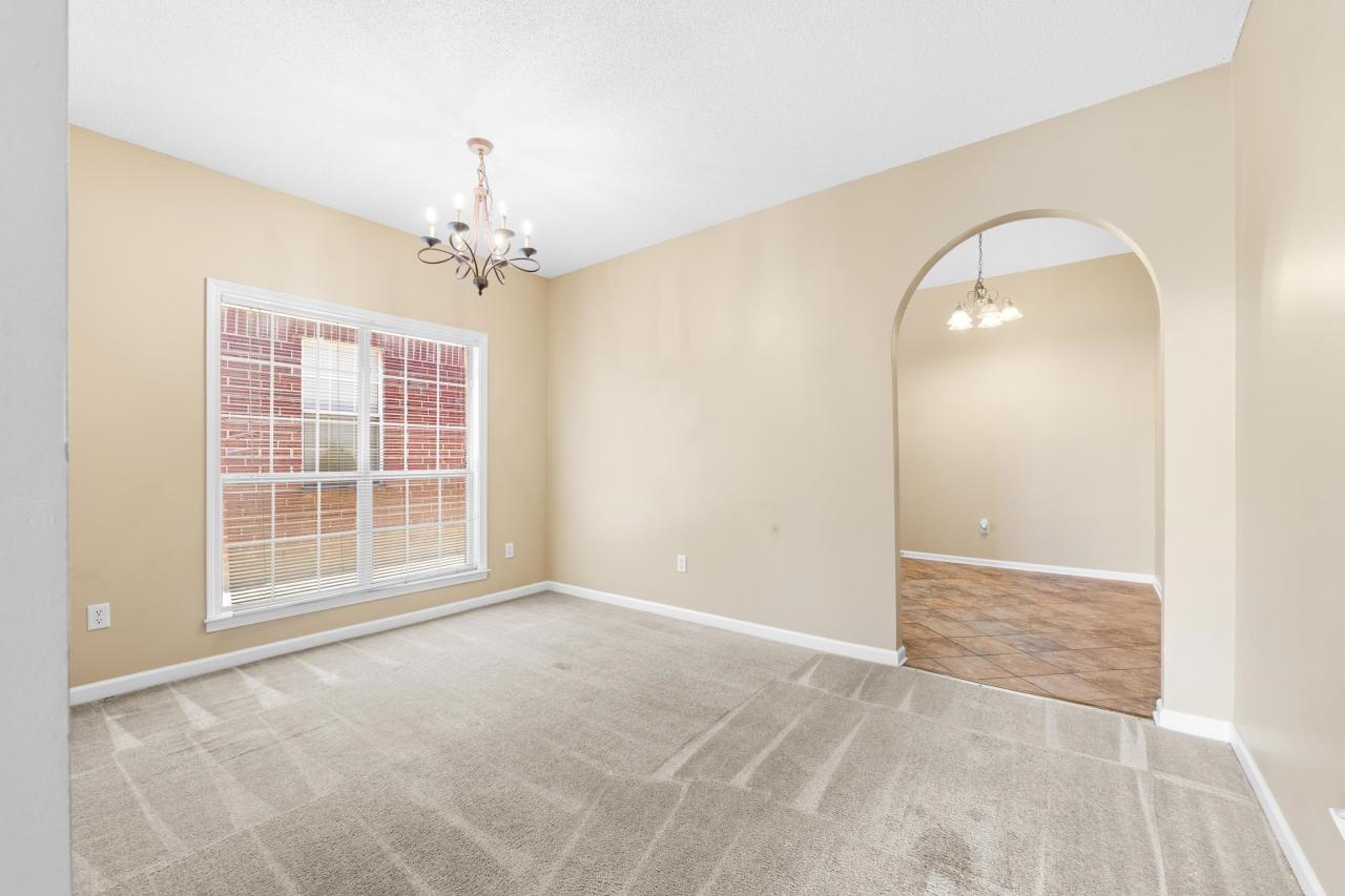 OPEN HOUSE 10/26: 1-3PM! Welcome home-Immaculate, move-in ready 3BR, 2.5BA brick home in the heart of Cordova! Step inside the gracious tiled entry and be welcomed by smooth ceilings, arched doorways and warm neutral tones throughout. The spacious great room boasts soaring ceilings, plantation shutters, a loft overlook, and a cozy fireplace—perfect for relaxing on chilly nights. Host memorable gatherings in the elegant formal dining room beneath a sparkling chandelier. The eat-in kitchen features tile flooring, vaulted ceiling, and a full suite of appliances including a smooth cooktop, oven, microwave, dishwasher and refrigerator. Retreat to the downstairs primary suite with a walk-in closet and luxury bath featuring dual vanities, a whirlpool tub, and a walk-in shower. Upstairs offers a cozy loft, two additional bedrooms, and a full bath. Enjoy the fenced backyard and patio for outdoor living. New roof and 2-car garage complete this well-maintained gem near shopping, dining & schools!