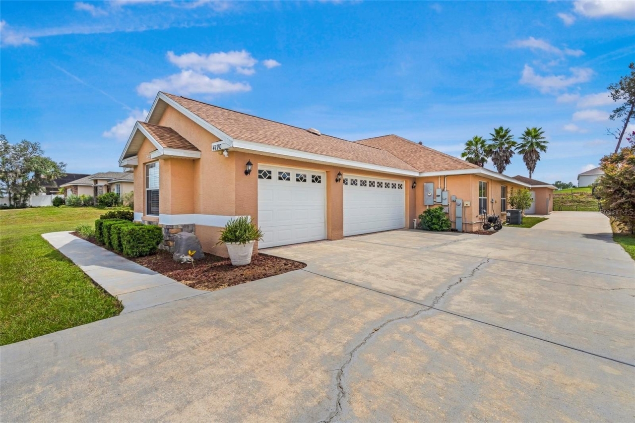 Welcome to elegant Florida living in this beautifully crafted home located in the desirable Ocala Waterway Estates. From the moment you arrive, you’ll be captivated by the home’s grand presence, manicured landscaping, and timeless curb appeal. Spacious Living space with Approximately 3,366 sq ft of comfortable living area featuring 4 bedrooms and 4 full bathrooms — plenty of room for family, guests, or a home office. Step through the stately double doors into an open, light-filled floor plan designed for both comfort and sophistication. The spacious great room features, Gas fireplace, soaring ceilings, and expansive views of the private screened in pool and hot tub in the backyard, perfect for entertaining or quiet evenings at home. The chef’s kitchen impresses with custom cabinetry, stainless steel appliances, and a large breakfast bar that flows seamlessly from the breakfast nook to the family room. The luxurious primary suite with a tray ceiling and propane gas fireplace offers a private retreat with a spa-inspired bath—complete with dual vanities, a jetted tub, a separate walk-in shower, and a generous walk-in closet. Three additional bedrooms and three more full baths provide ample space for family or guests. With 2 A/C units you control the tempature on each side of the home. This home has plenty of storage inside the home and outside. There is a shed and a lean-to for your lawn equipment and a 14 X 21 workshop with air and power. Right next to the workshop there is a 45 x 12 RV pad that is 8 inches thick with two s 50 amp. circuits and 3 car garages. Conveniently located near top-rated schools, shopping, dining, I-75, and the Florida Greenway, this home combines tranquility with accessibility—making it the perfect blend of luxury, location, and lifestyle.