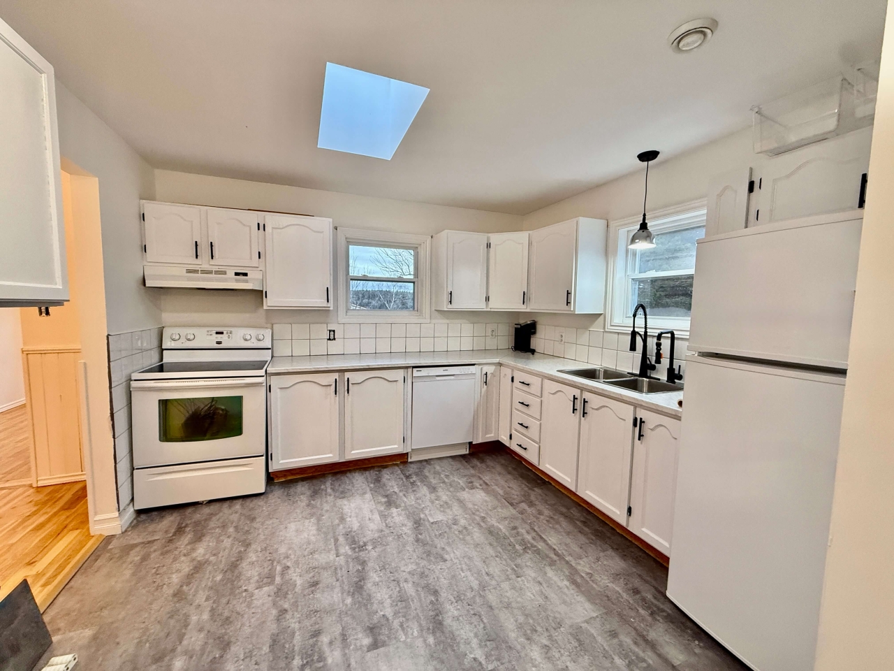 Step inside to an open-concept living space that feels instantly comfortable. The spacious kitchen and dining area flow naturally into the main living room, creating a functional layout ideal for everyday living or entertaining. Natural light fills the space, enhanced by some upgraded light fixtures that add a modern touch.
