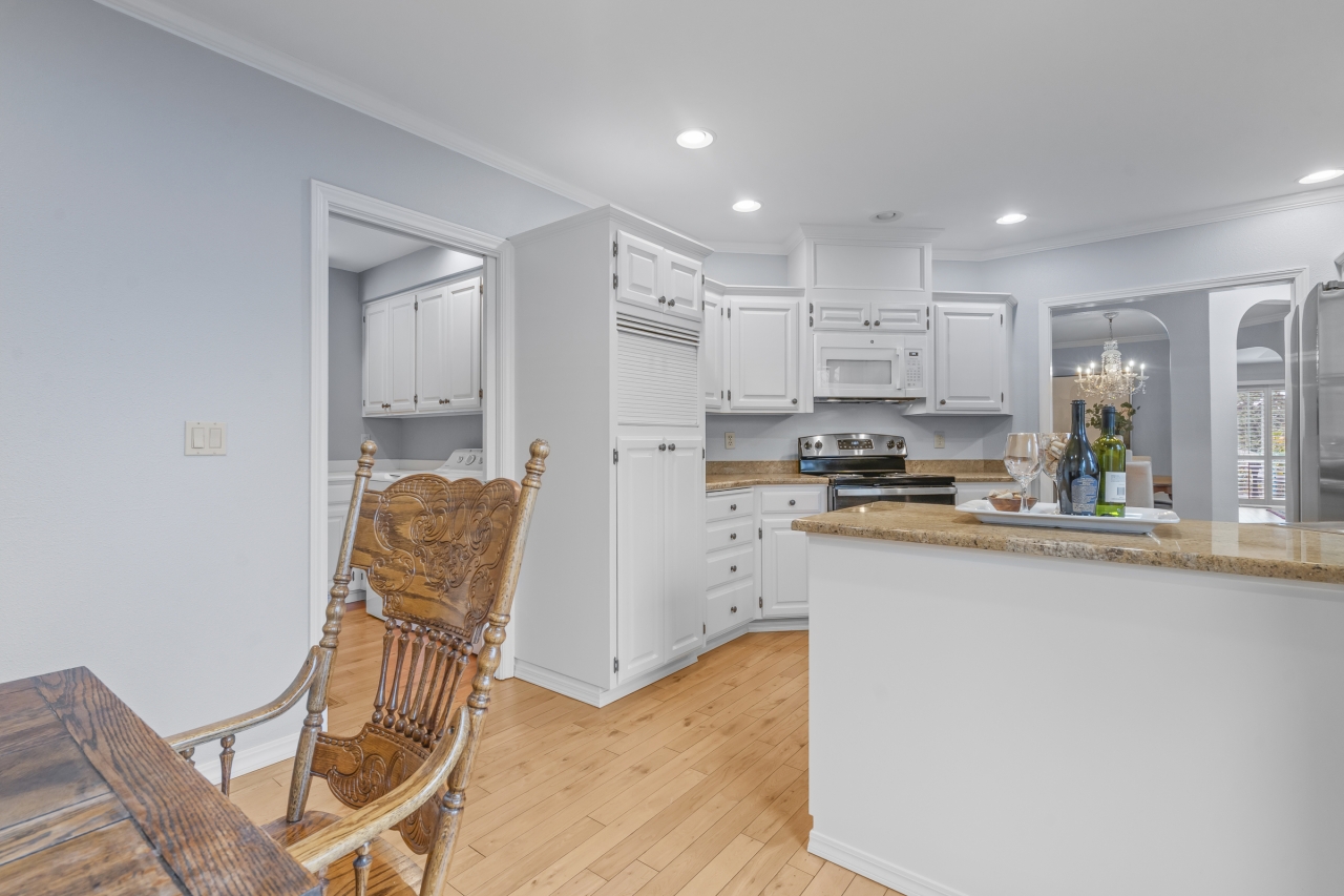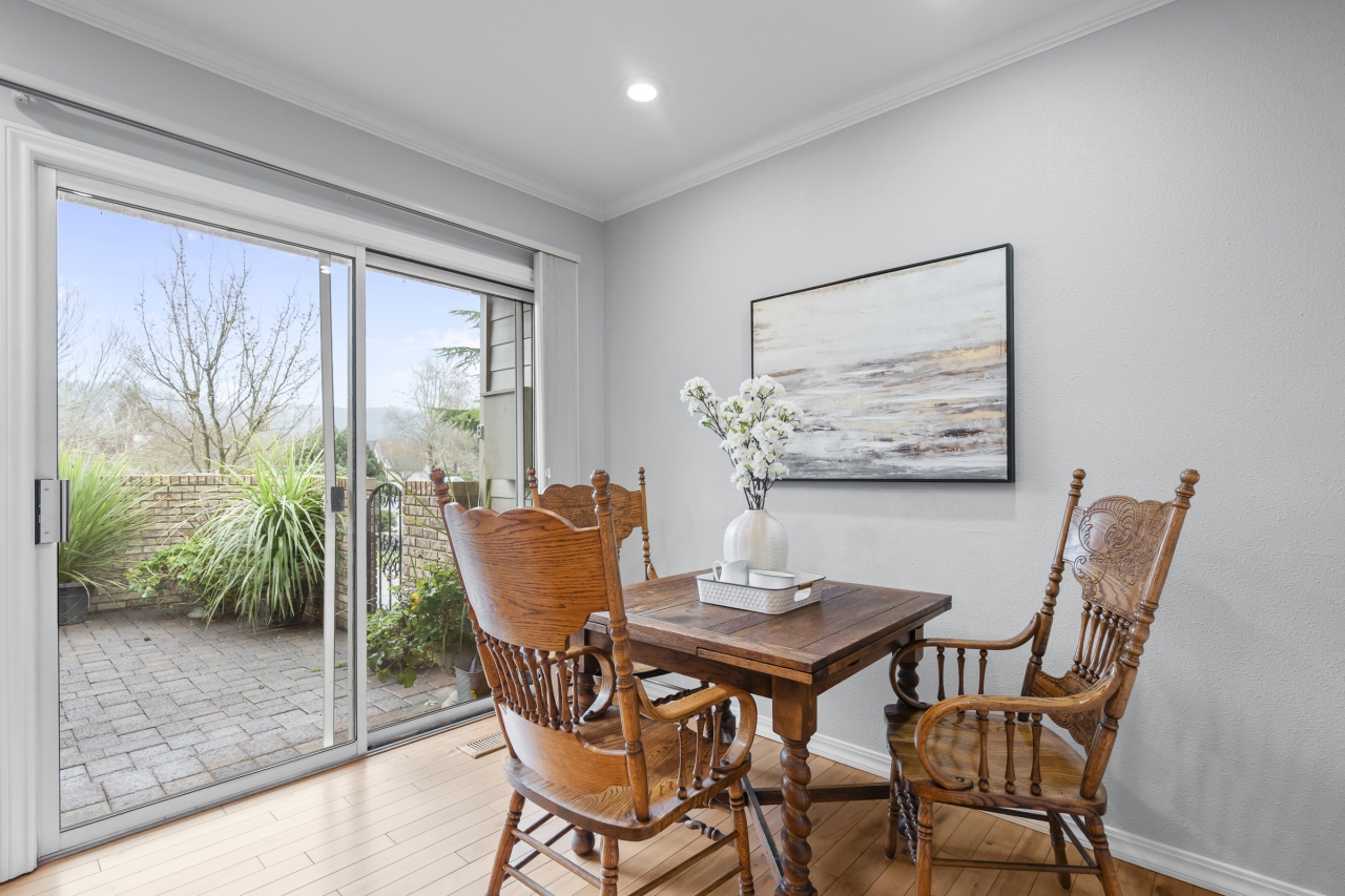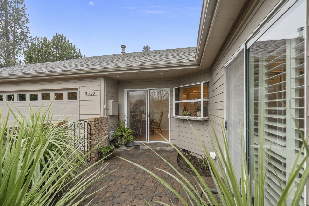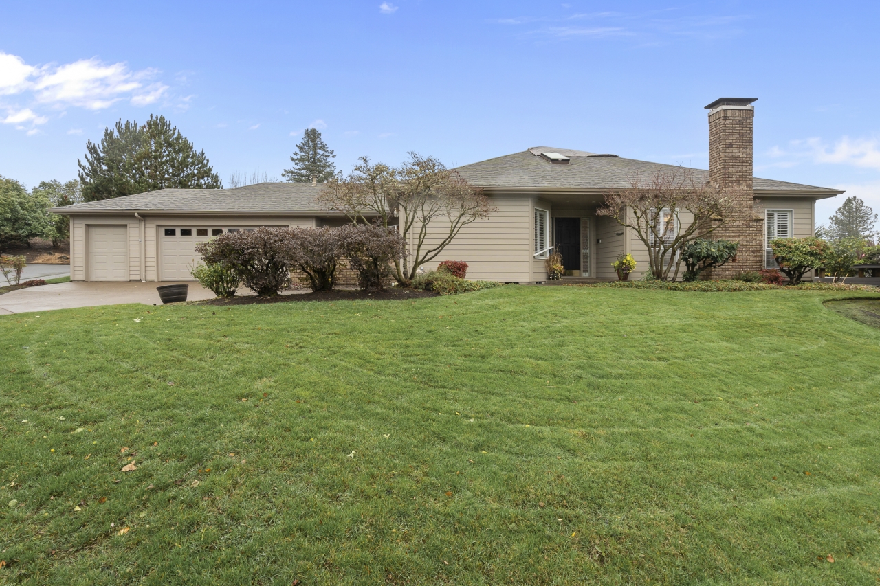 This beautifully maintained Kaufman-built home offers the perfect blend of elegance and easy, low-maintenance lifestyle at Illahe Hills, Salem's private country club community. The thoughtfully designed main level features a spacious master suite with dual sinks and generous closet space, plus a versatile bedroom/office ideal for working from home or welcoming guests. The kitchen opens to a charming eating nook and flows seamlessly to a private patio—perfect for morning coffee or evening entertaining. The vaulted living room creates an impressive sense of space, showcasing a gas fireplace, custom built-in shelves, and deck access for indoor-outdoor enjoyment. Plantation shutters grace most windows, while elegant crown molding adds sophisticated detail throughout. Upstairs, discover a large bedroom/bonus room offering flexibility for family, guests, or recreation. Recent updates include fresh interior paint, and a 2020 HVAC system for comfort and peace of mind. The golf cart garage adds convenient country club functionality. This turn-key home delivers the coveted Illahe Hills lifestyle with minimal upkeep—leaving you more time to enjoy the exceptional amenities, championship golf, and community this exclusive neighborhood offers. Don't miss this rare opportunity!
