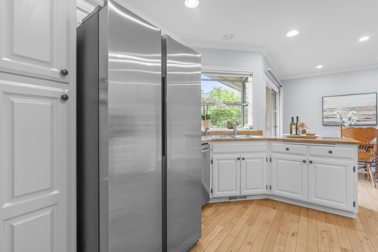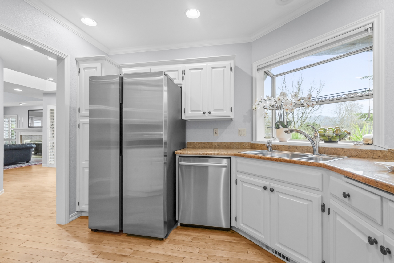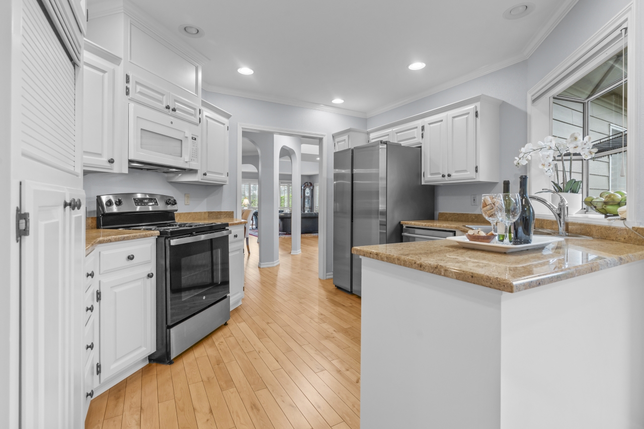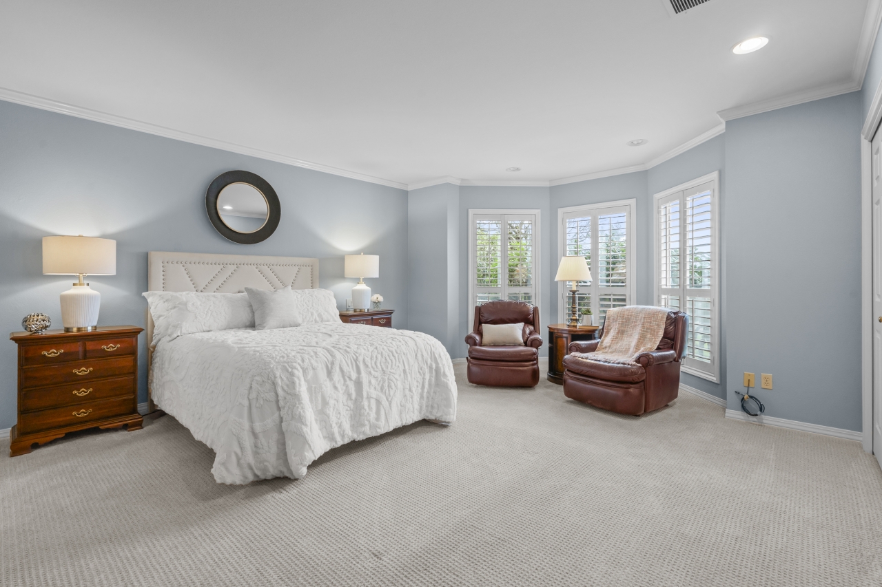 This beautifully maintained Kaufman-built home offers the perfect blend of elegance and easy, low-maintenance lifestyle at Illahe Hills, Salem's private country club community. The thoughtfully designed main level features a spacious master suite with dual sinks and generous closet space, plus a versatile bedroom/office ideal for working from home or welcoming guests. The kitchen opens to a charming eating nook and flows seamlessly to a private patio—perfect for morning coffee or evening entertaining. The vaulted living room creates an impressive sense of space, showcasing a gas fireplace, custom built-in shelves, and deck access for indoor-outdoor enjoyment. Plantation shutters grace most windows, while elegant crown molding adds sophisticated detail throughout. Upstairs, discover a large bedroom/bonus room offering flexibility for family, guests, or recreation. Recent updates include fresh interior paint, and a 2020 HVAC system for comfort and peace of mind. The golf cart garage adds convenient country club functionality. This turn-key home delivers the coveted Illahe Hills lifestyle with minimal upkeep—leaving you more time to enjoy the exceptional amenities, championship golf, and community this exclusive neighborhood offers. Don't miss this rare opportunity!