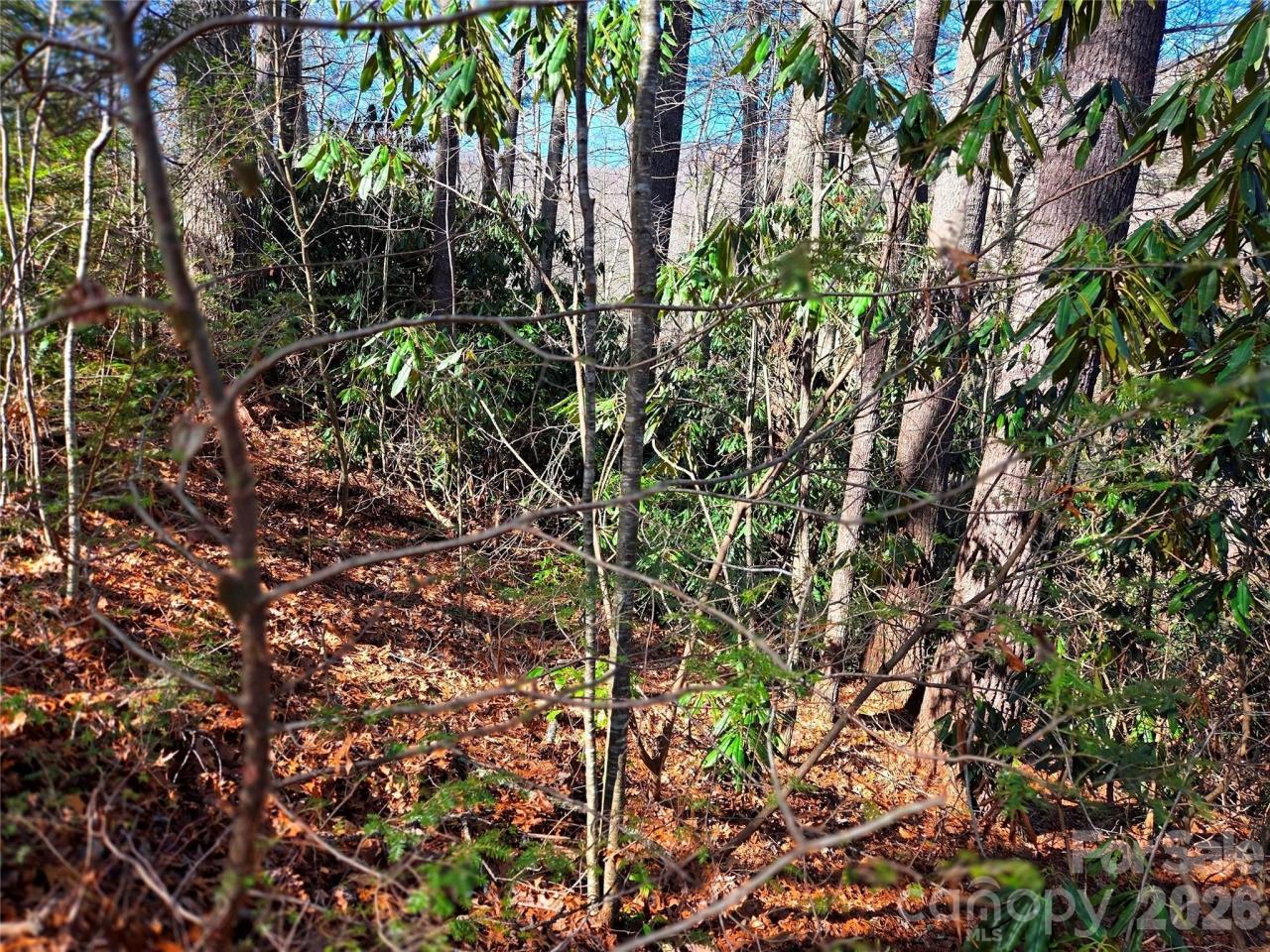 Located in the Rivers Edge subdivision, this mountain homesite offers a minimum build requirement of just 950 sq ft. Crossing the river on a charming wooden bridge, you enter a private neighborhood of only 32 lots. This end-of-the-road property spans 0.75 acres and is nestled in a lush rhododendron forest, surrounded by tall trees and mountain views, once some trees are trimmed. The community features well-maintained gravel roads and a peaceful, natural setting. Jonathan Creek, approximately 60 feet wide, curves along the edge of the neighborhood, while this property sits about 100 feet above the river, providing excellent elevation, cool breezes and no flood concerns. Enjoy fishing in the river, exploring nearby attractions, or quick access to the conveniences of Waynesville, Maggie Valley, Cherokee, and Asheville. No manufactured or mobile homes are permitted. HOA dues are $450 per year, covering maintenance of the roads, bridge, and common areas. Annual Taxes $205.40. Expired 3-Bedroom septic from 1998.