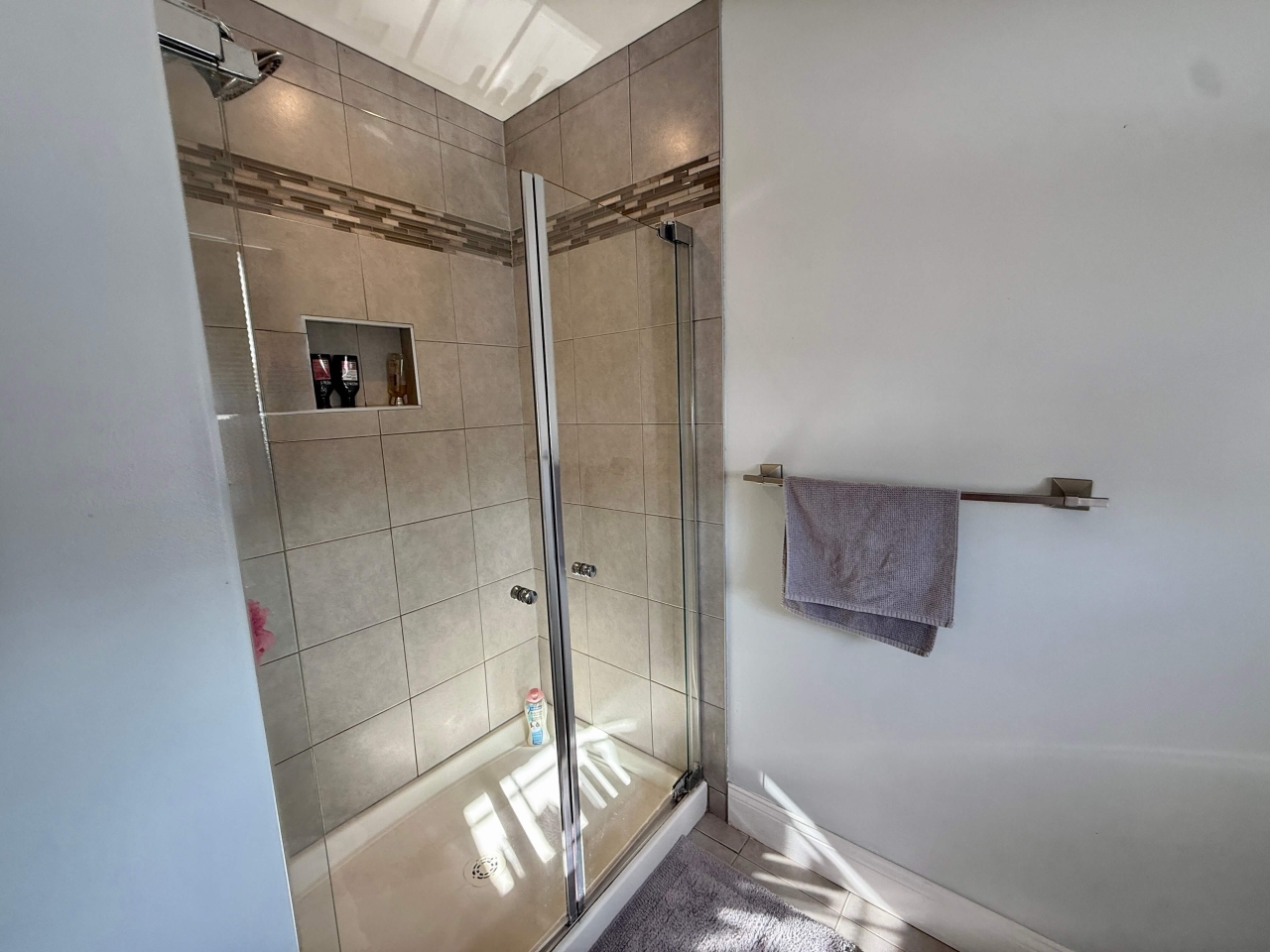 A beautiful tiled walk-in shower
