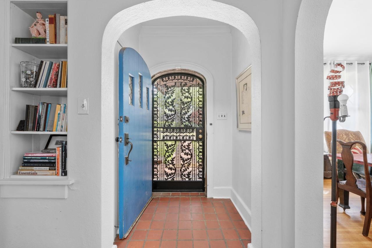 tep outside and enjoy quiet mornings on the front porch or host friends on the shaded back deck. The iron-gated side yard, mature oak trees, and perennial gardens create a private, peaceful feel. Detached garage with utilities doubles as a workshop.