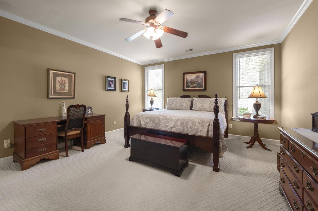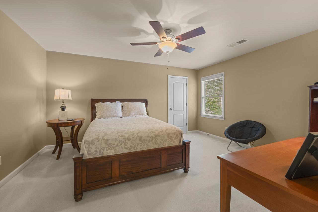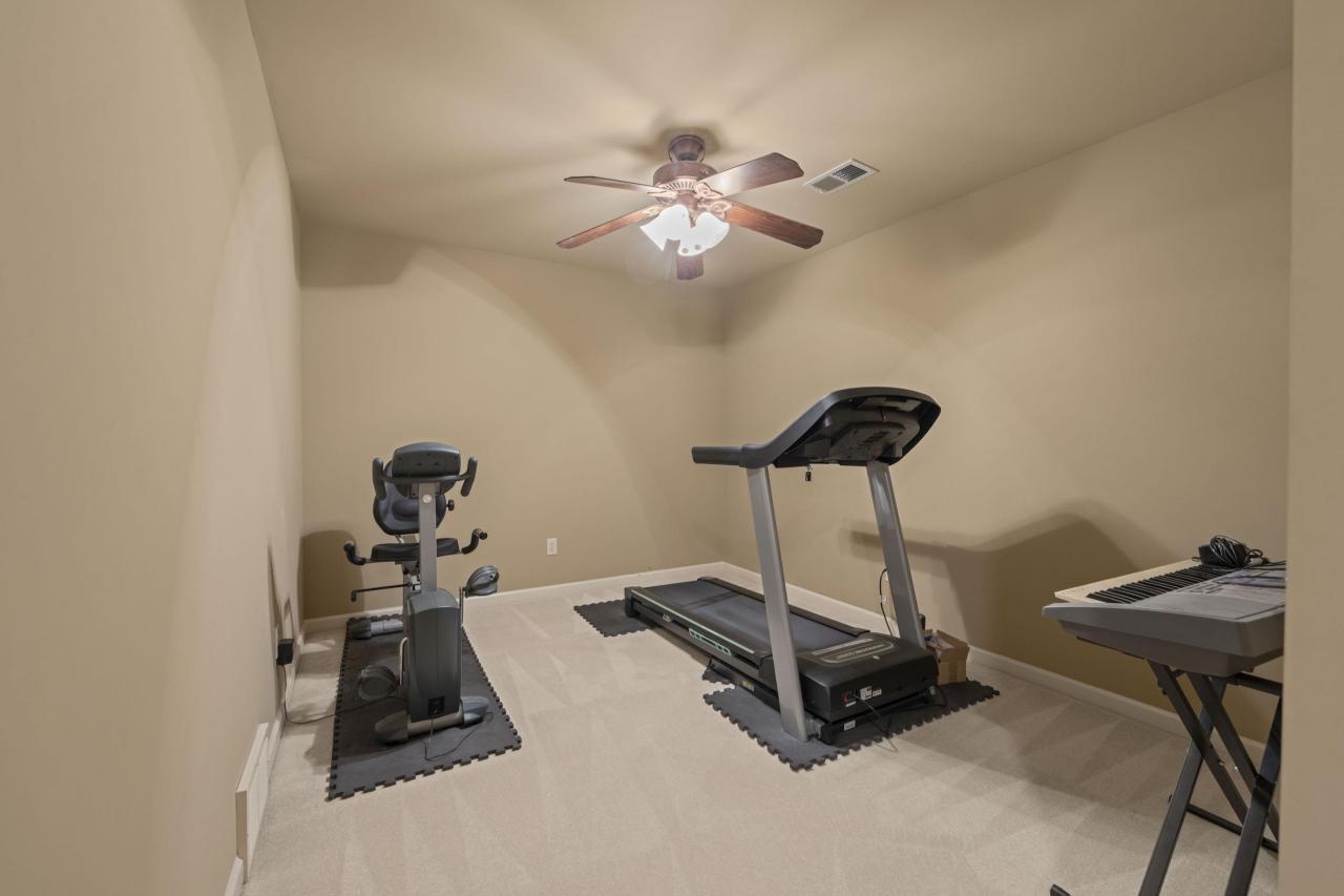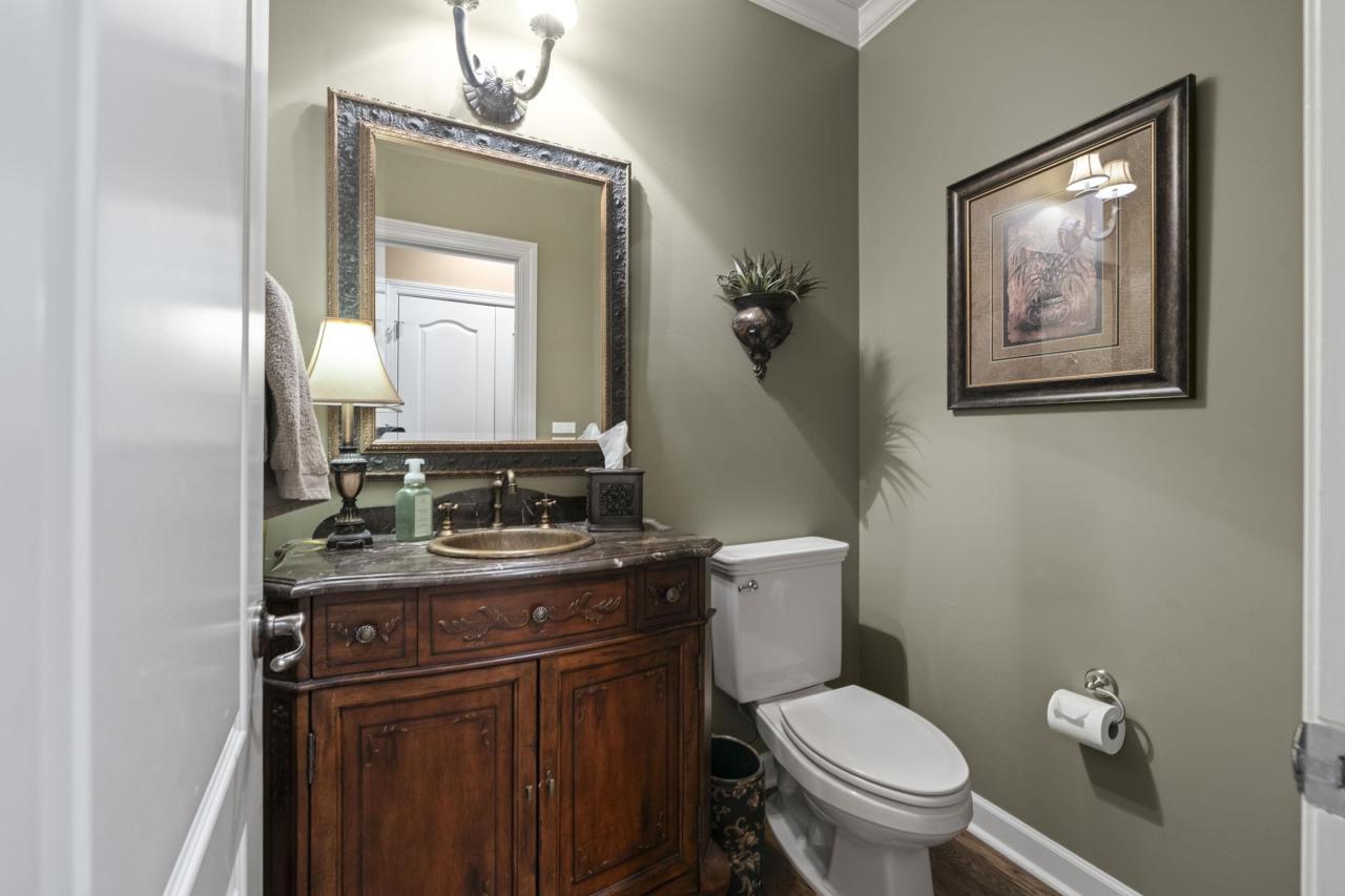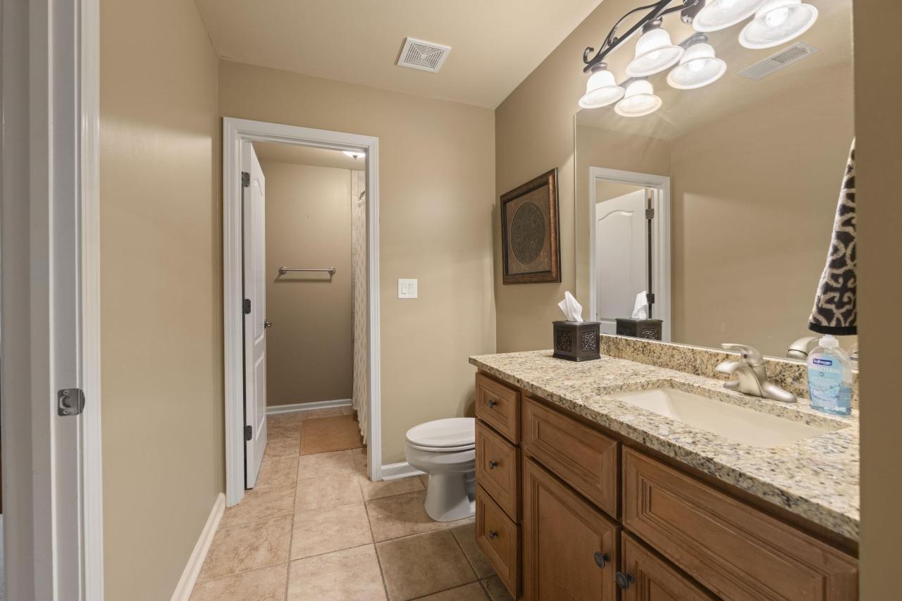 The main-level primary suite feels like a private escape with a spa-like bath, whirlpool tub, and walk-in shower. Upstairs, every bedroom has its own bath, plus a large game room and a true theater room for movie nights at home.